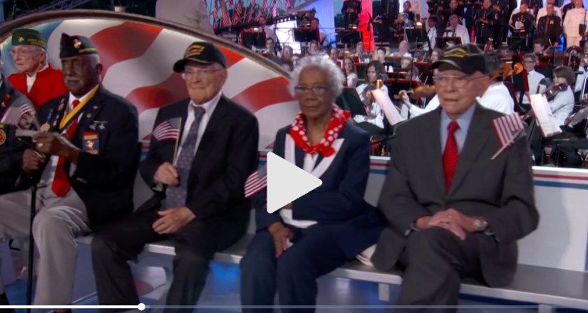 Parkwood Resident and centenarian Paul Snyder was among 17 World War II veterans honored at the 35th anniversary of the National Memorial Day Concert held on the West Lawn of the U.S. Capitol on Sunday. These veterans were hailed as representatives of our country’s “greatest generation.” The full concert can be viewed using this link. Paul and the other honorees appear on the stage approximately 30 minutes into the program.