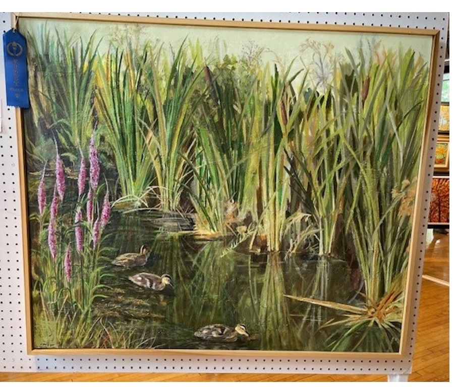 First Prize winner in Landscapes: “No Rush in the Weeds”, an acrylic painting by Christina Haslinger.
