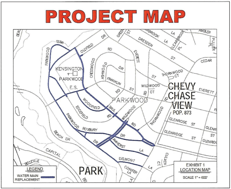 The work being done in Parkwood is divided into two separate WSSC projects: